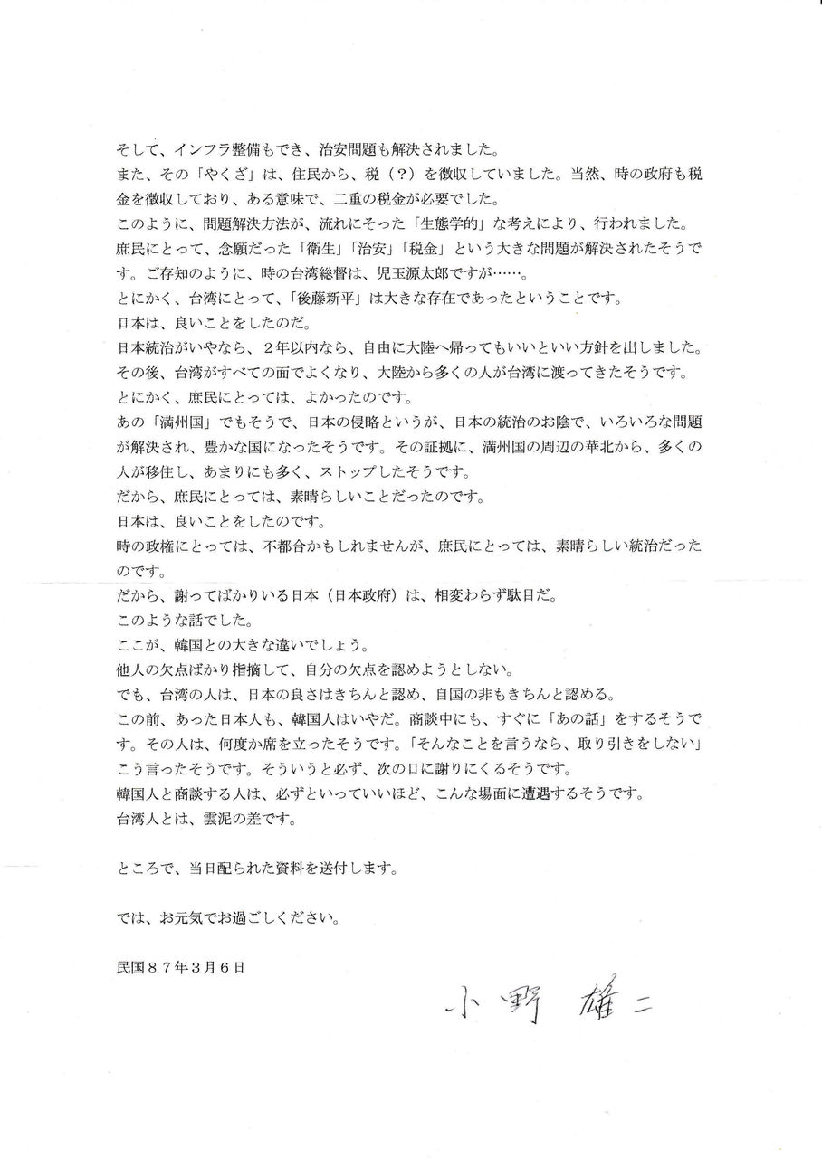 私は敢えて台湾の歴史に触れたのである。