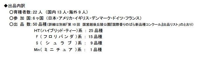 『国際香りのばら新品種コンクール』出品リスト」のとおり)