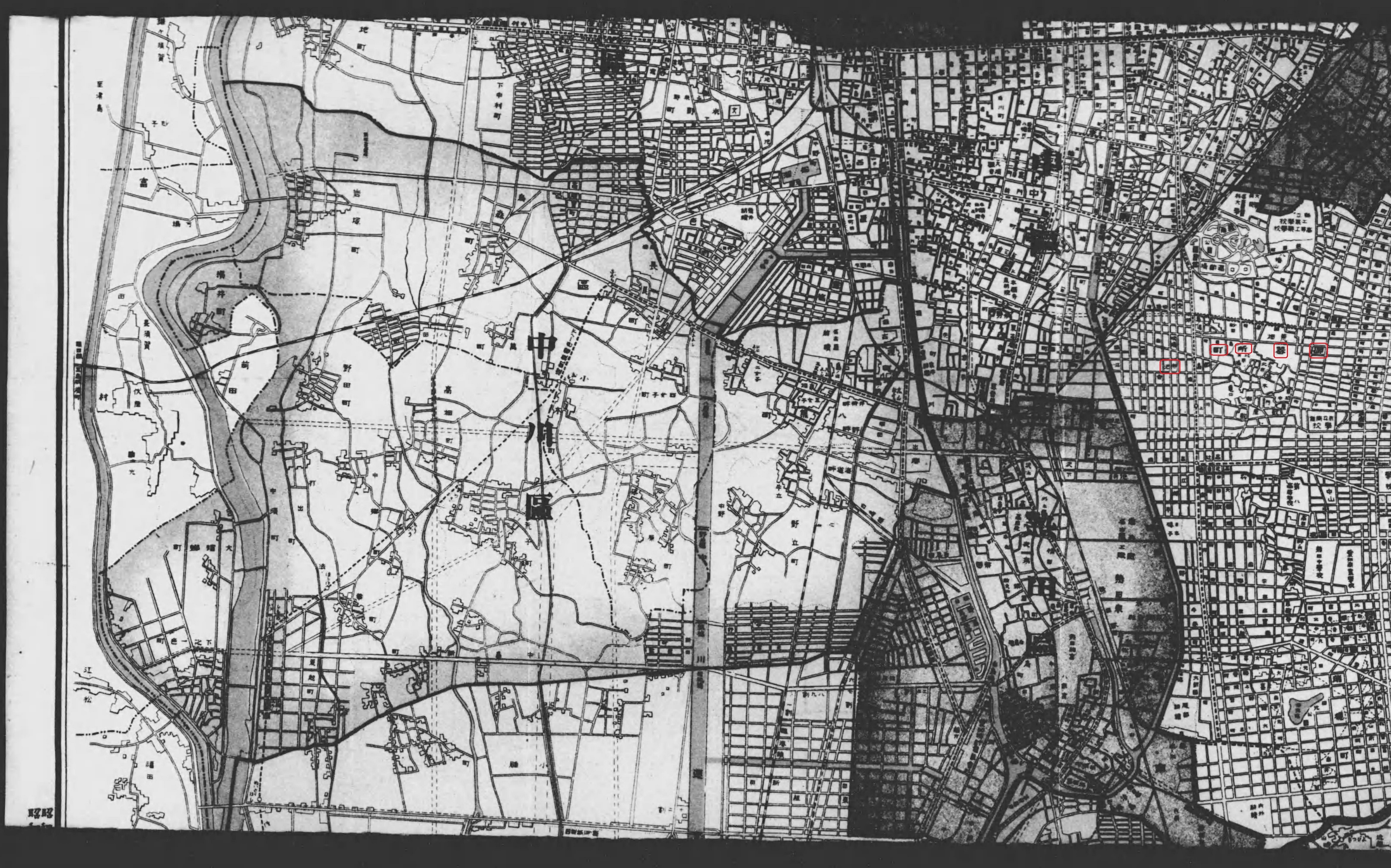 西方ハ堤防及竹林(出入困難)ヲ以テ限ラレ