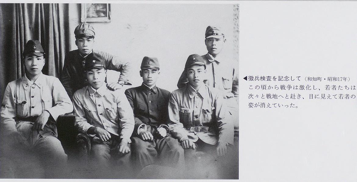 ◀上和知国民学校の女子卒業生(和知町・昭和17年頃)