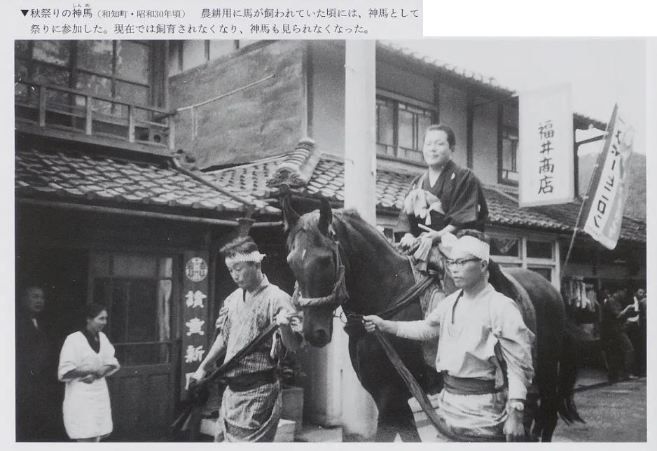 ▼秋祭りの神馬(和知町・昭和30年頃)
