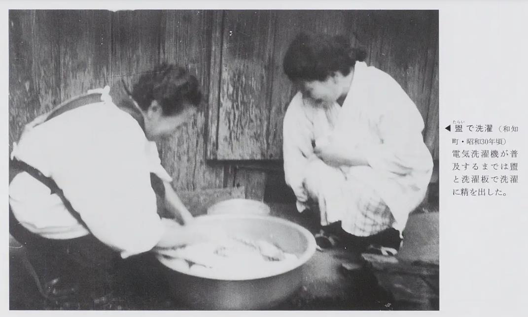 ◀盥(たらい)で洗濯(和知町・昭和30年頃)