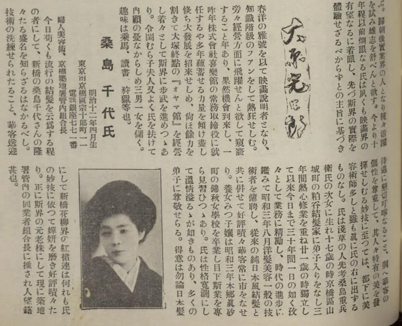 銀座美容院 (早見君子) 東京市京橋區銀座