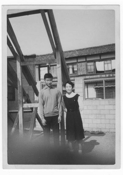 後列 小野一雄 小坂真一 大庭憲雄(いずれも 桃山高校一年)前列 佐伯和子 (柳池中学 鴨沂高校一年)