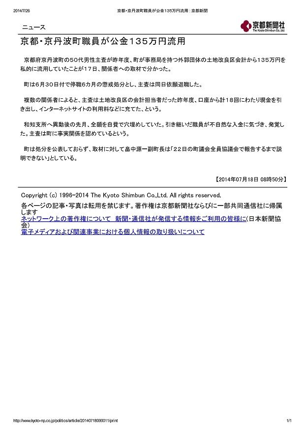 http://www.kyoto-np.co.jp/politics/article/20140718000011《京都新聞》【 2014年07月18日 23時40分 】