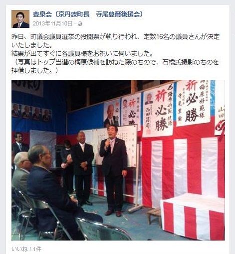《梅原好範議員:京丹波町議会選挙:トップ当選の梅原候補》