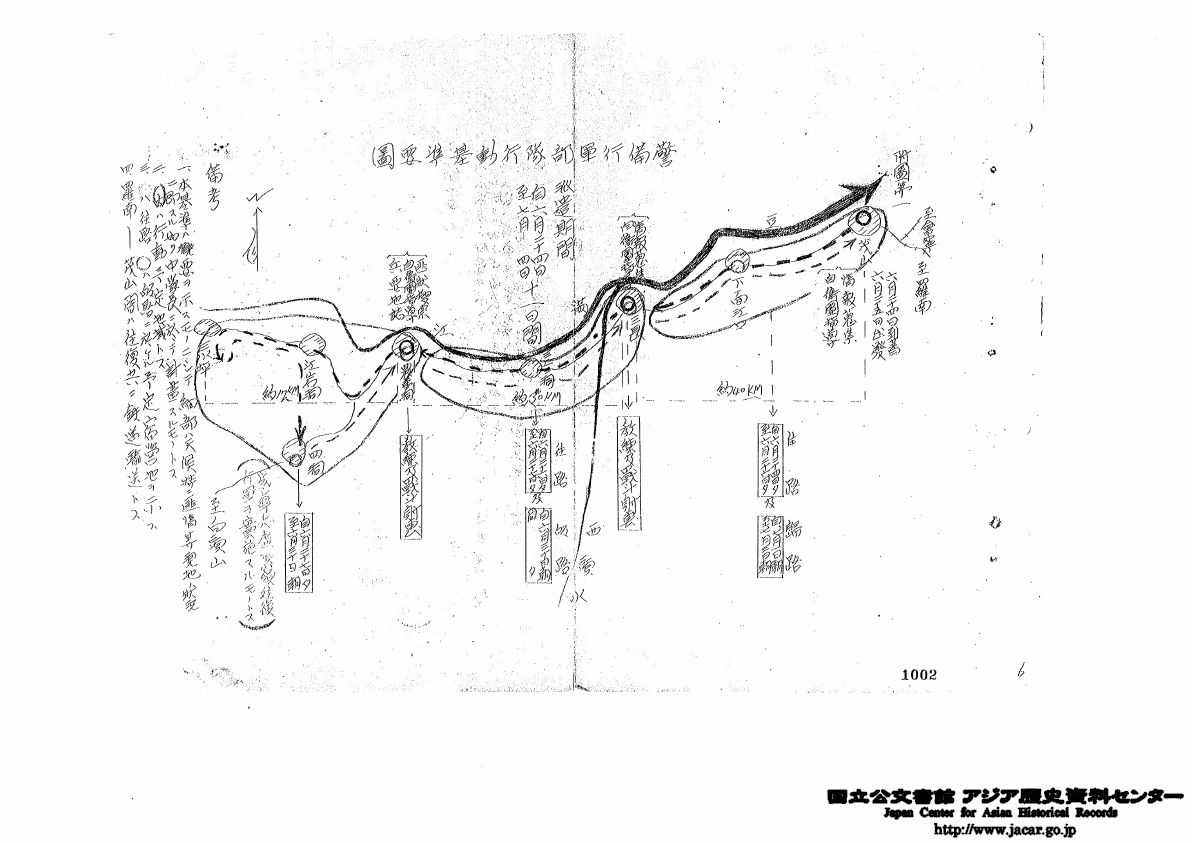 一、警備行軍部隊派遣期間及行動基準附圖第一ノ如シ