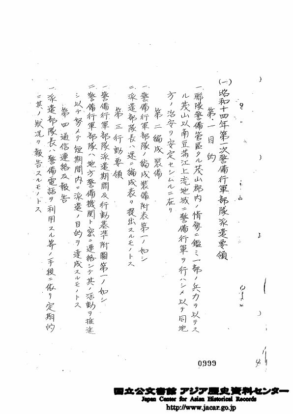 [笠間史料]一、昭和十四年度第一次警備行軍部隊派遣要領及準備ノ狀况①
