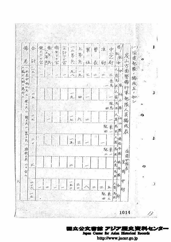 茂山方面警備行軍部隊人員編成表