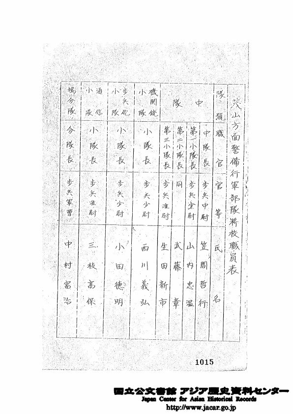 茂山方面警備行軍部隊將校職員表 p3/38
