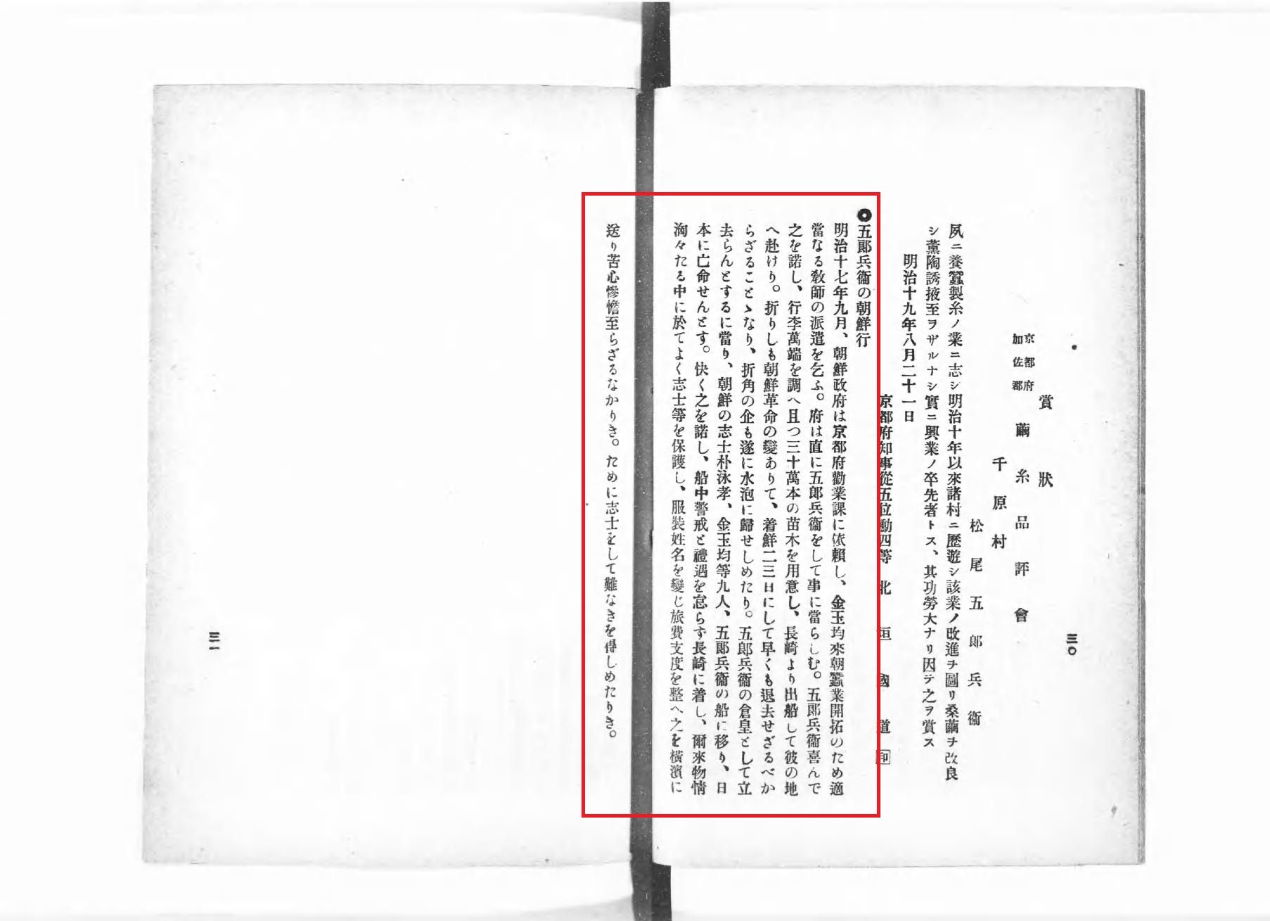 松尾五郎兵衞は加佐郡河東村字千原の人、 ※京都府福知山市大江町