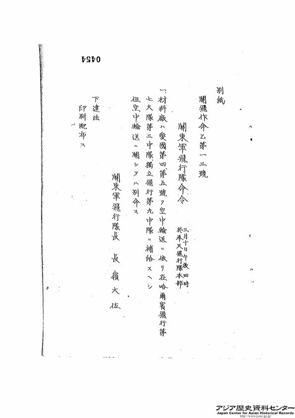 在哈爾賓飛行第七大隊第三中隊、獨立飛行第九中隊ニ補給スヘシ