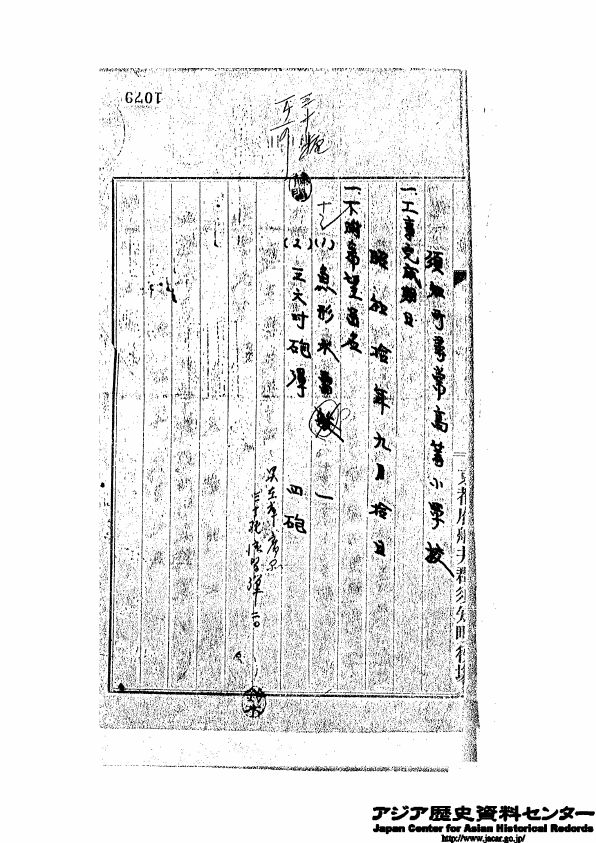 件名標題(日本語) 第3345号 昭和10.8.7 廃兵器無償下附の件