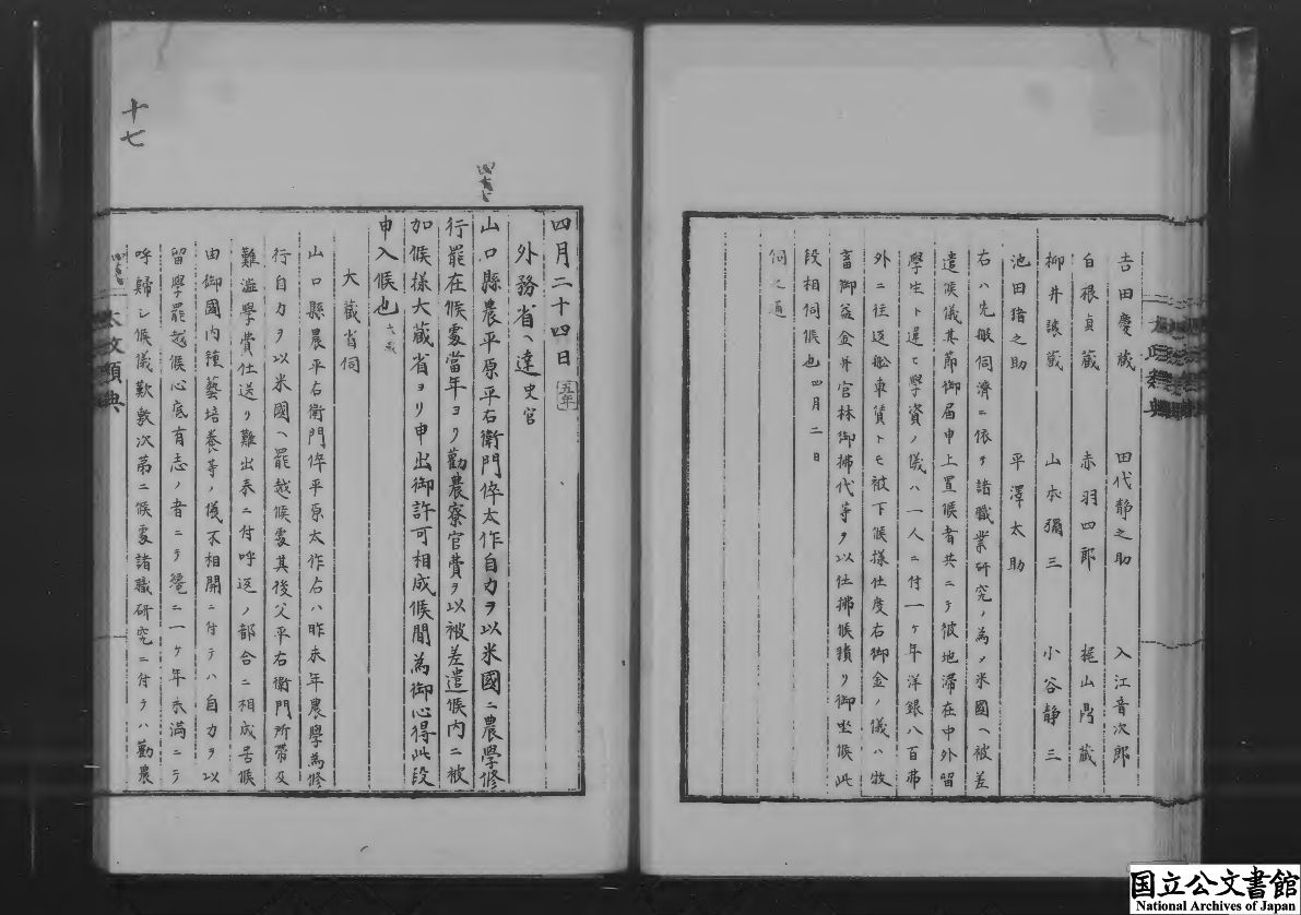 [米国自費留学 平原太作ヲ勧農寮官費生トス]明治5年4月