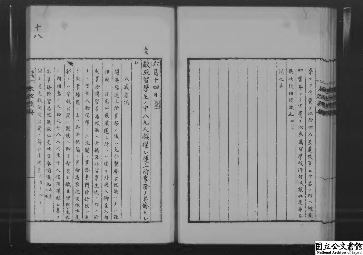 寮ヨリ官費ヲ以 拾四名 差遣候事ニ付