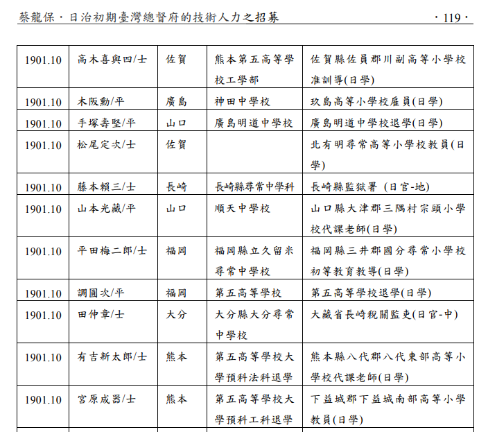 蔡龍保.日治初期臺灣總督府的技術人力之招募 .119. p45/69