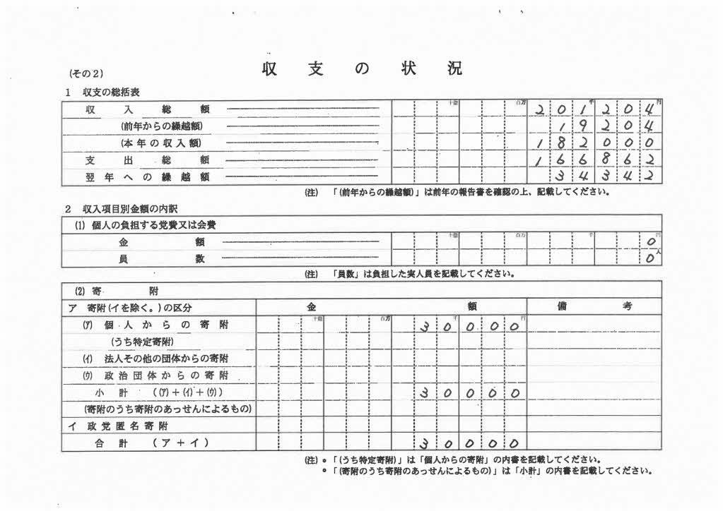 収支報告書 平成30年分 受付番号3488