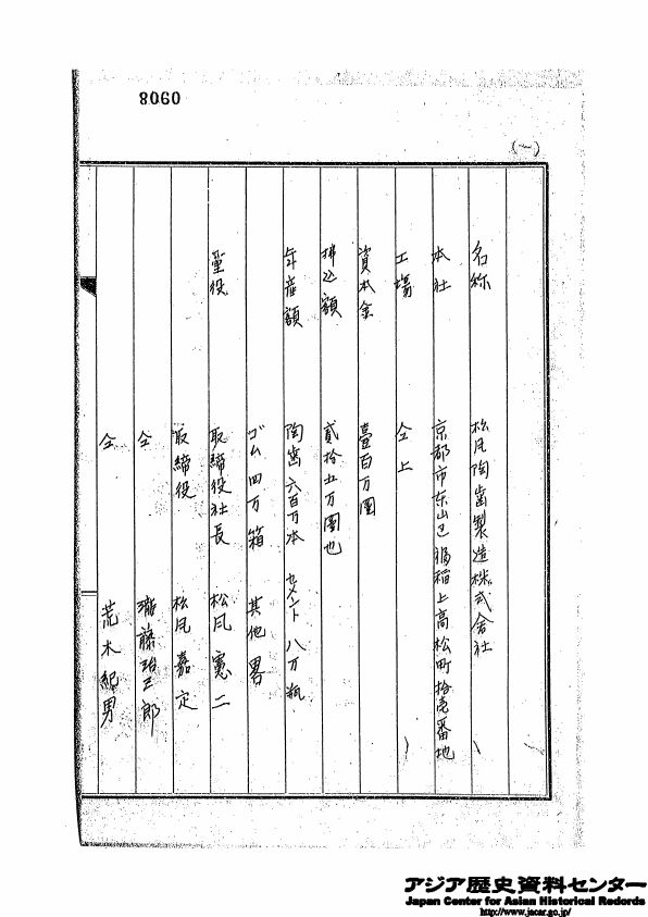 名 称 松風陶歯製造株式会社