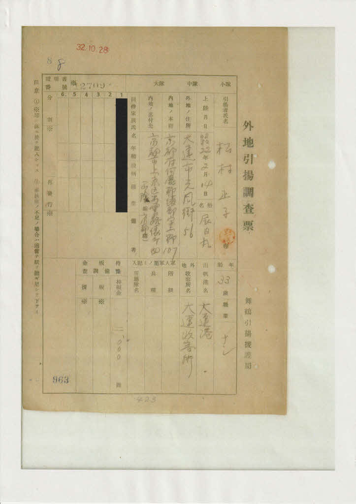 [外地引揚調査票]昭和32年