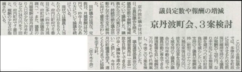 京丹波町議会:議員定数、報酬等改正について2021年2月16日