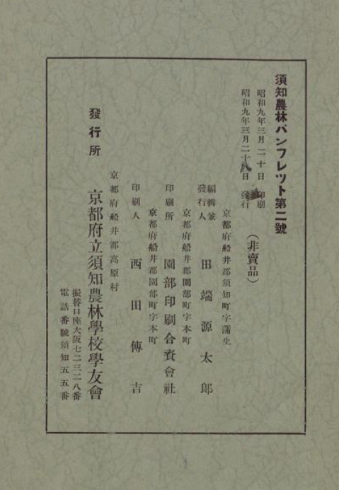 【須知農林パンフレツト. 第2号】昭和9年(1934)