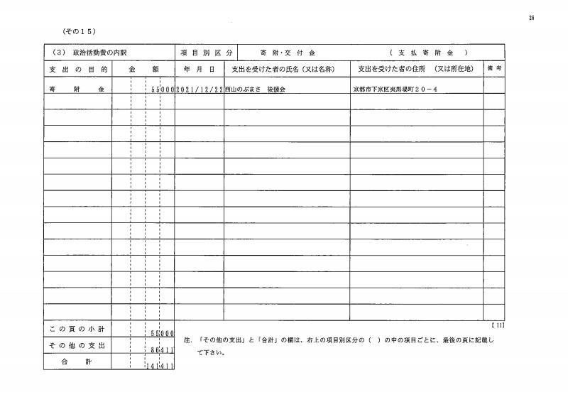 寄附金 55,000 2021/12/22 西山のぶまさ後援会