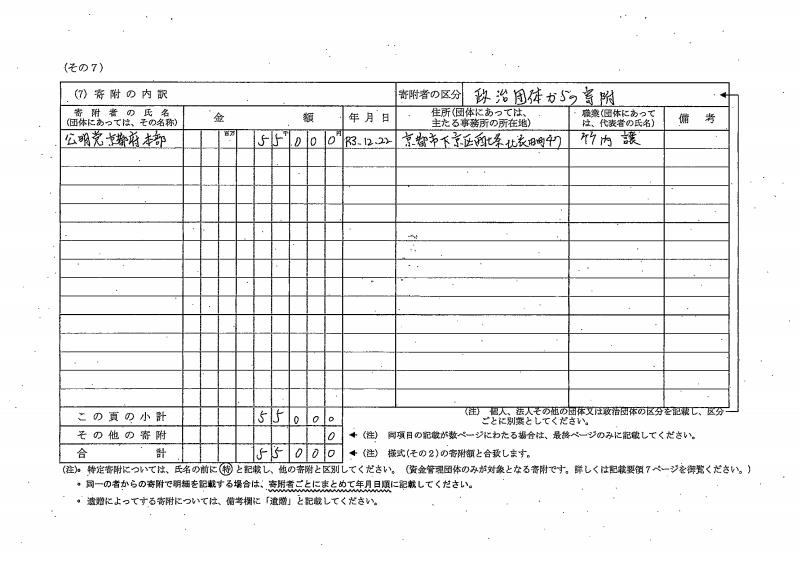 公明党京都府本部 55,000 R3.12.22 ―略― 竹内 譲