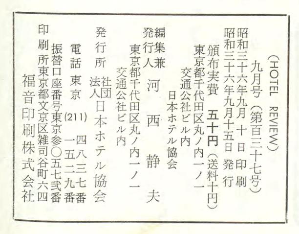 【Hotel review = ホテルレビュー 12(137)】昭和36年(1961)