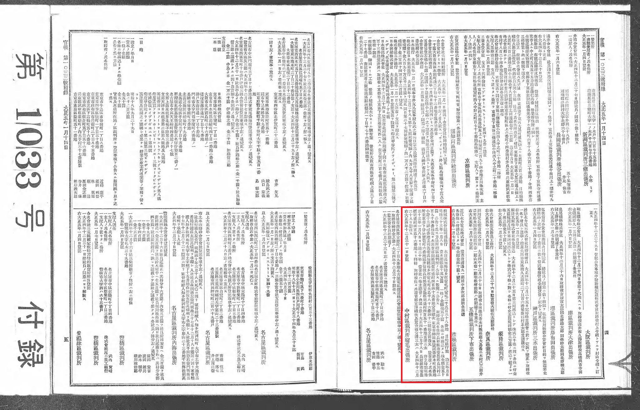 右 大正四年十二月三十一日登記