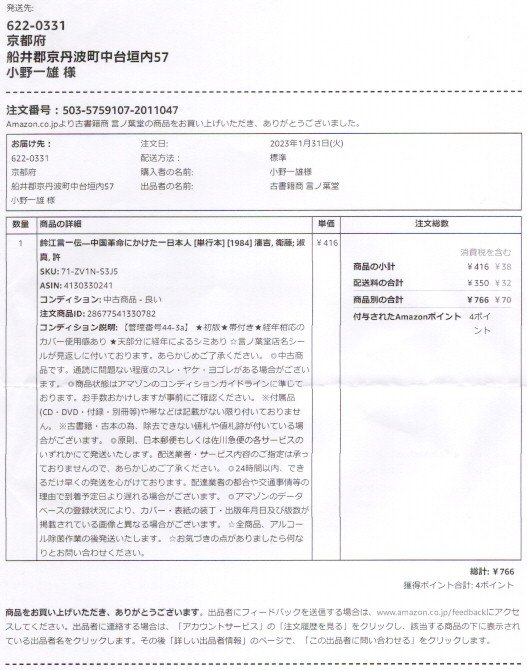 注文日 2023年1月31日(火)