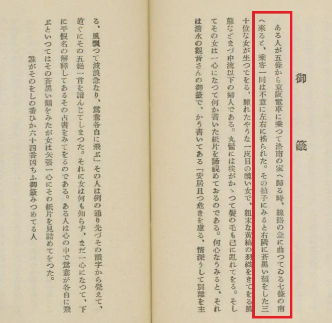 ある人が五條から京阪電車に乘つて洛南の家へ歸る時、