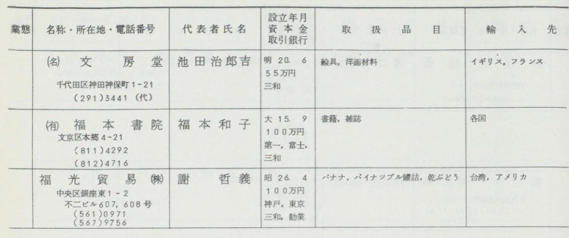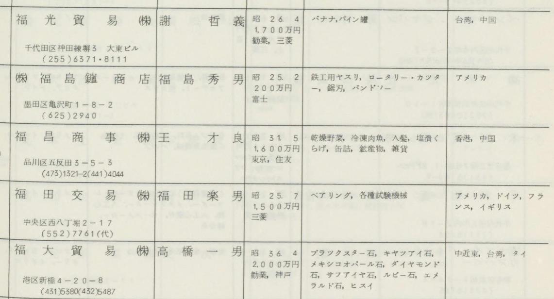 取扱品目 バナナ、パイナツプル罐詰、乾ぶどう