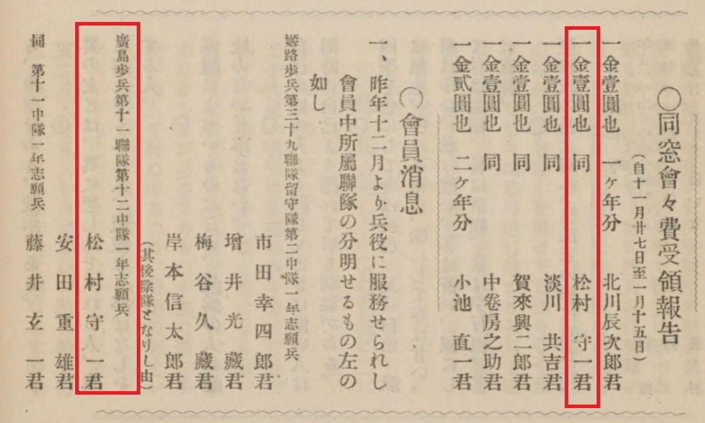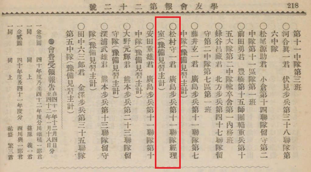 〇松村守一君 廣島步兵第十一聯隊經理室(豫備見習主計)