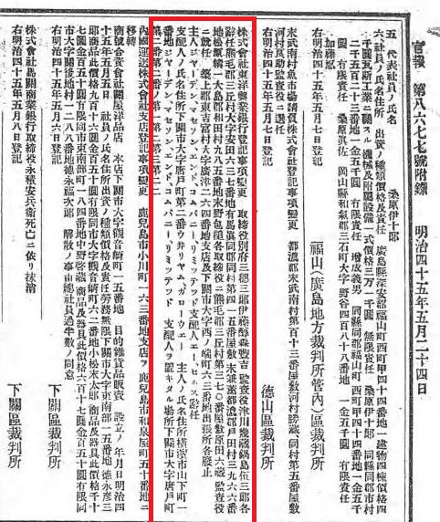 株式會社 門司貯蓄銀行支店 登記事項變更