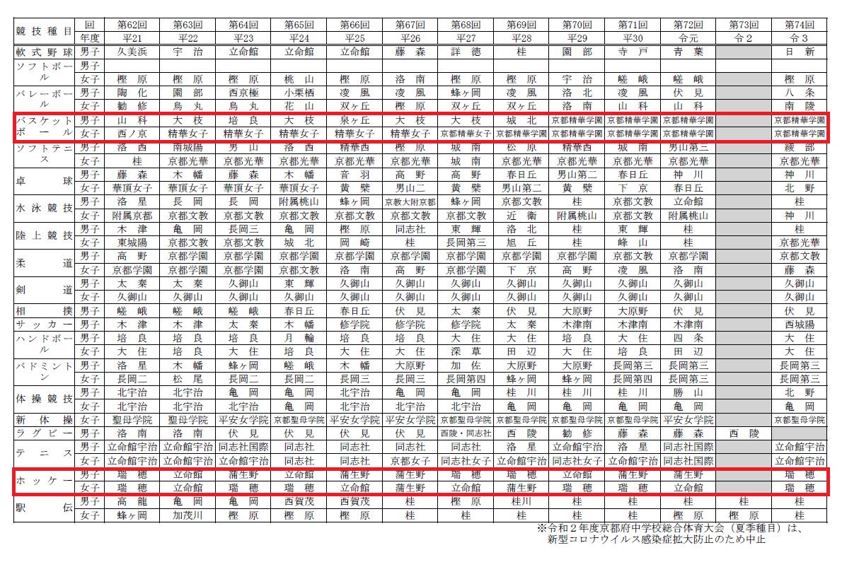 京都府中学校総合体育大会各種目 歴代優勝校一覧(夏季)p1