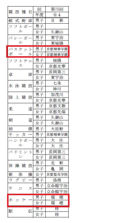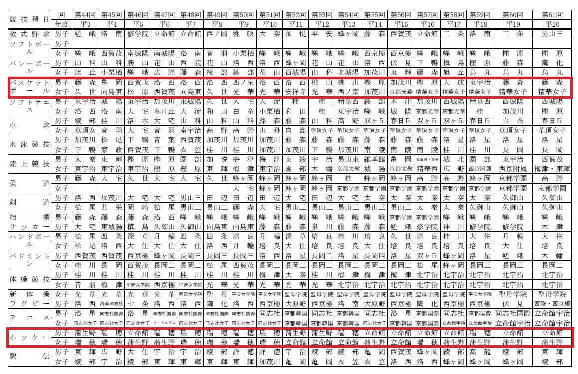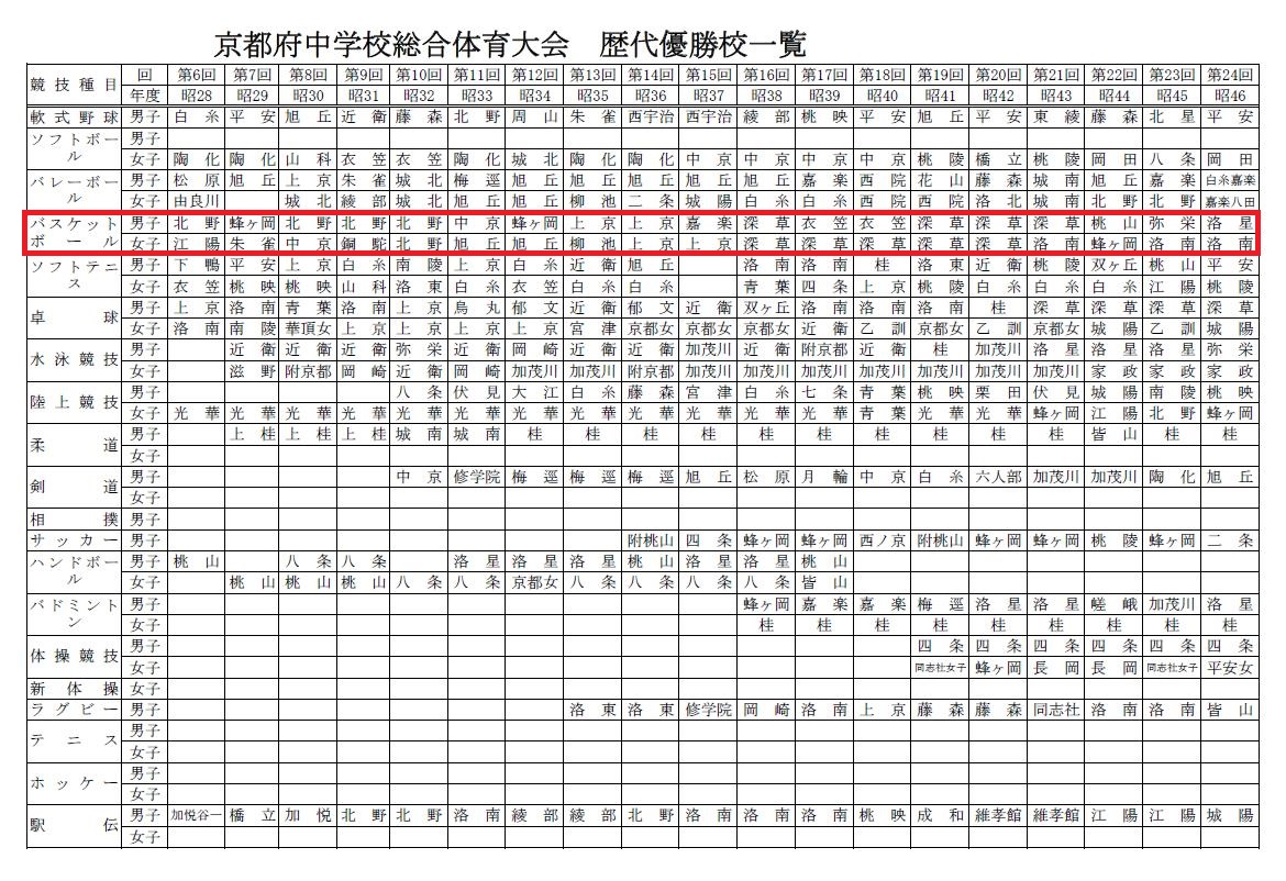 [京都府 中学校バスケットボール 優勝の歴史] 昭和24年~平成24年