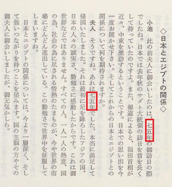〔画像〕p12サダト夫人(左)と小池百合子