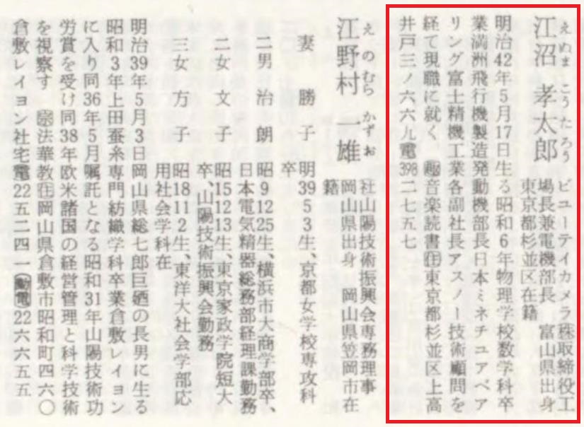 【人事興信録 第22版 上】1964