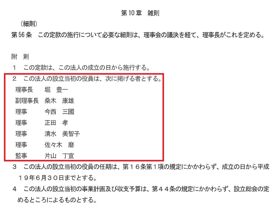2 この法人の設立当初の役員は、次に掲げる者とする。