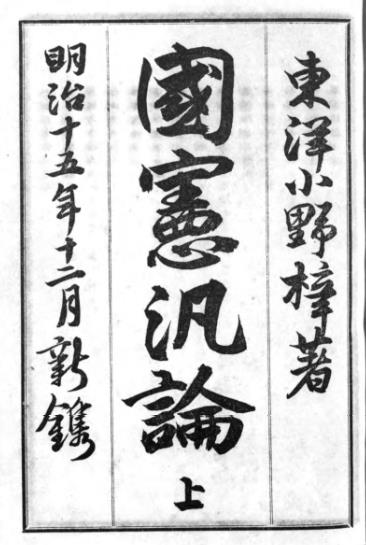 《小野梓著》【國憲汎論】東洋館書店 出版:明治18年(1885)