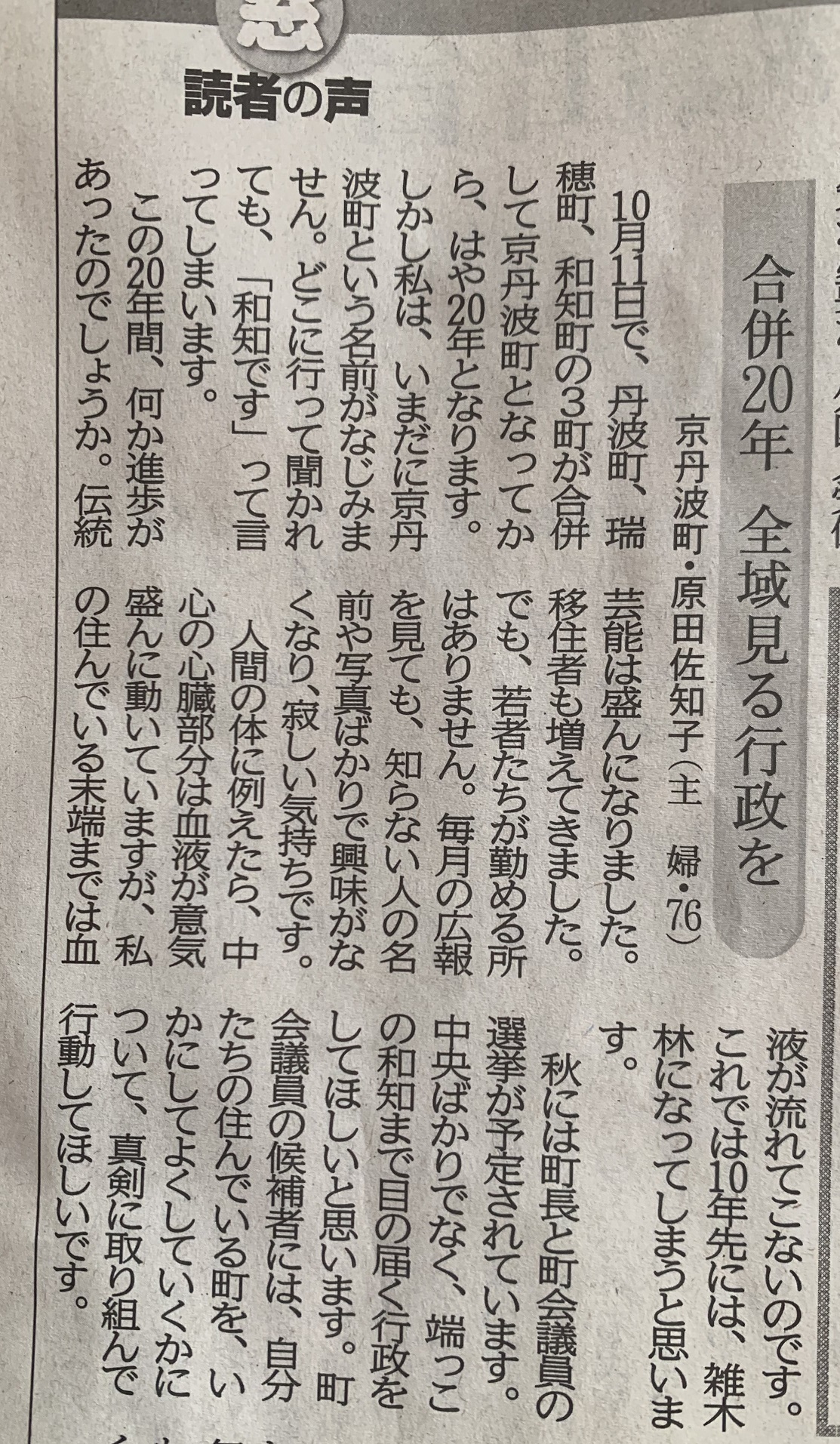 端っこの和知まで目の届く行政をしてほしいと思います。