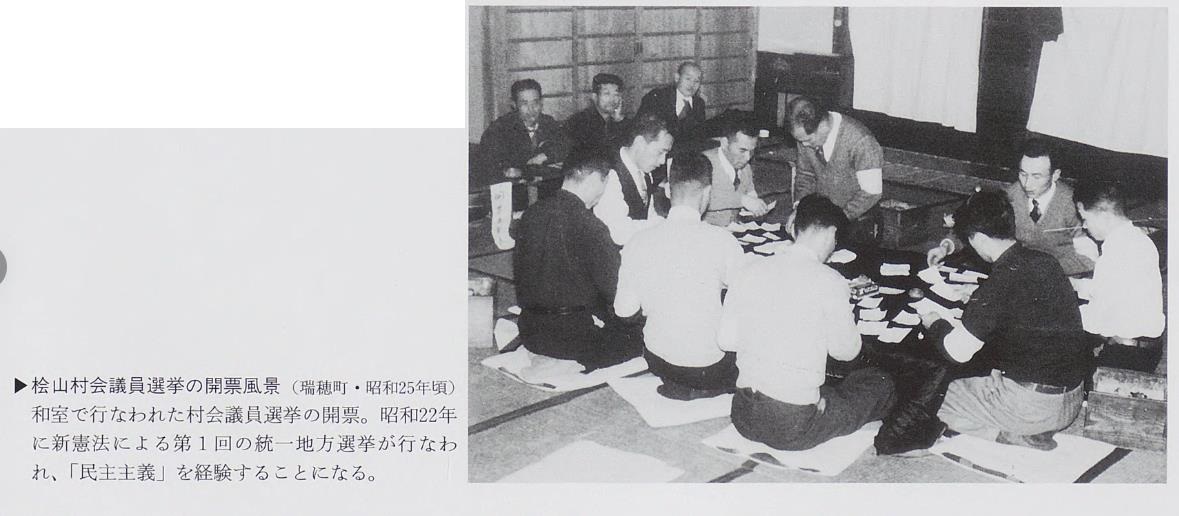 ▶桧山村会議員選挙の開票風景(瑞穂町・昭和25年頃)