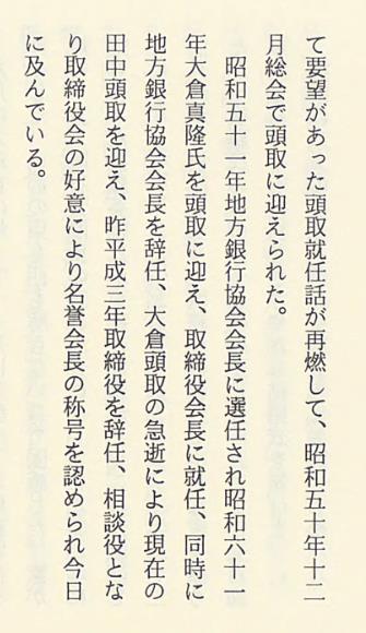 大倉頭取の急逝により現在の田中頭取を迎え、