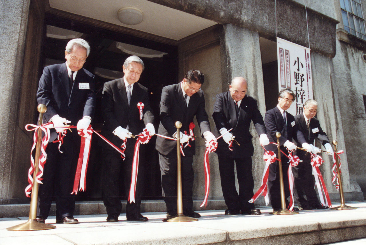 左から ? ? 小野雄二 奥島孝康第14代総長 ? ?テープカット