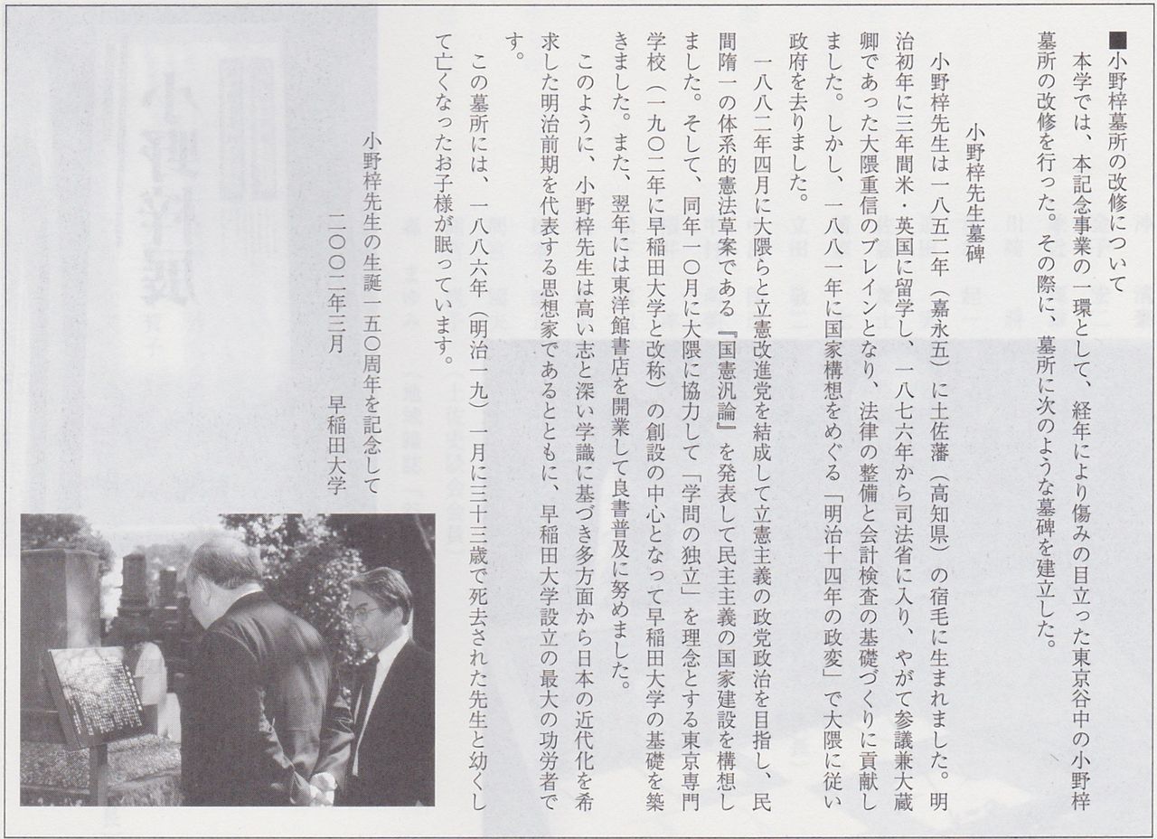 [小野梓生誕一五〇周年事業記録集]平成15年(2003) ②