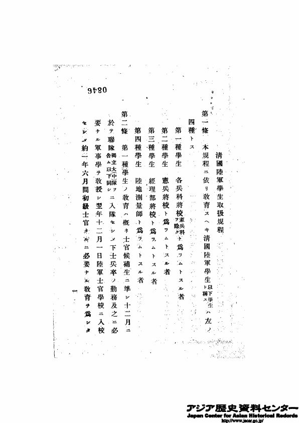 淸國陸軍學生取扱規程