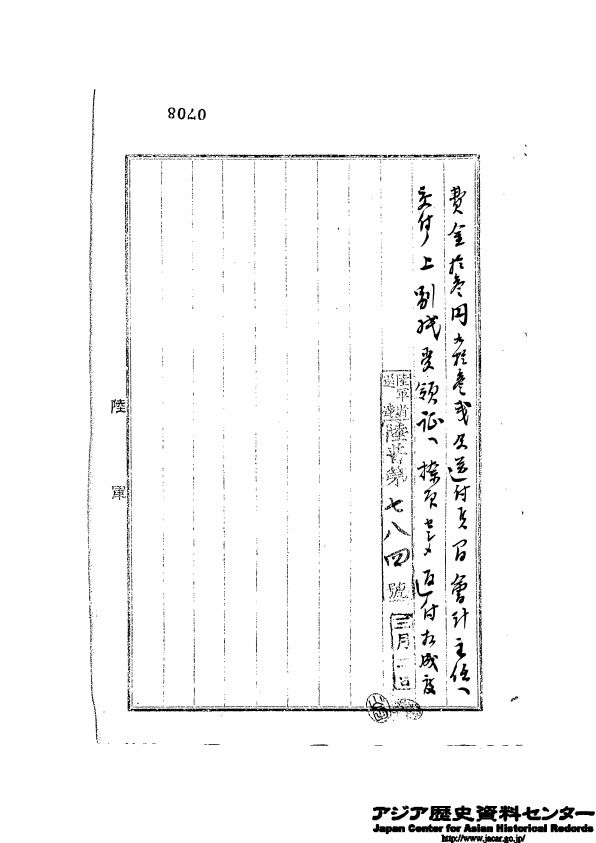 陸軍省 受領 貮第一七七號 廳名 軍事課