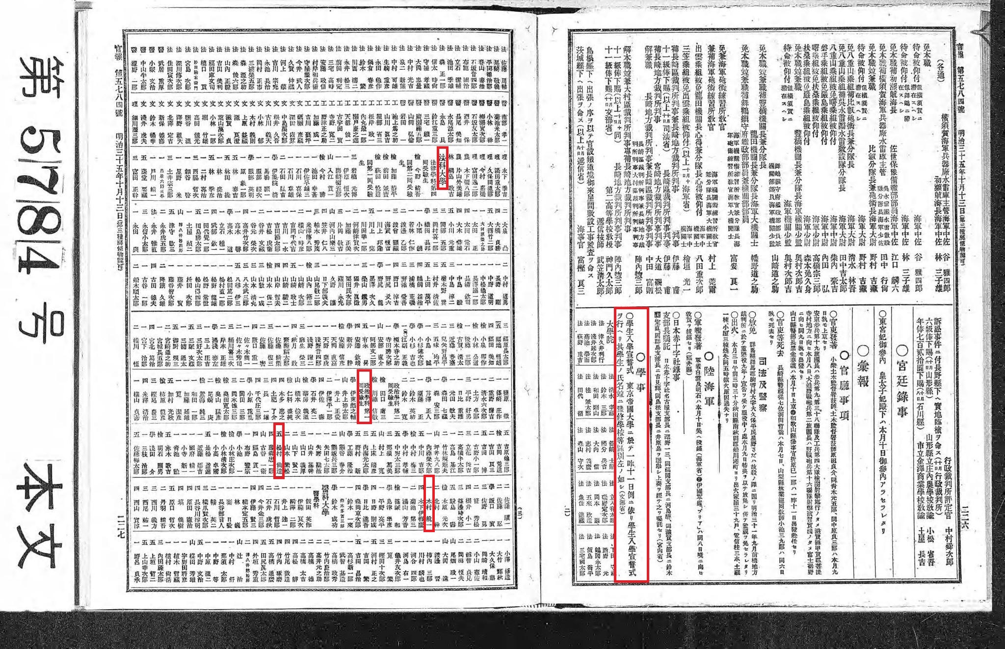 【官報 1902年10月13日】明治35年