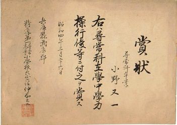 [褒状]武庫郡精道第一小学校尋常科第六学年