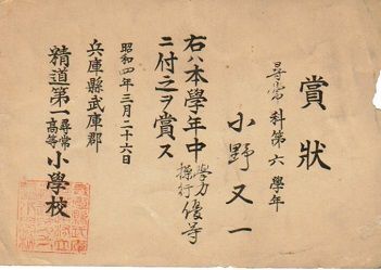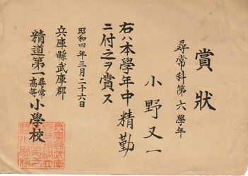 小野又一:[兵庫県武庫郡精道第一尋常高等小学校]